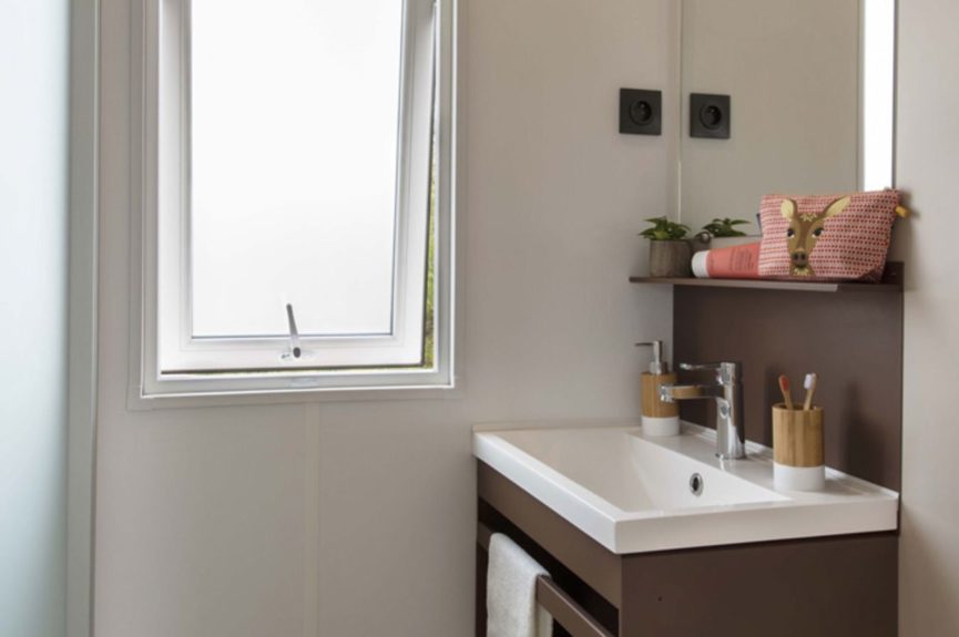 Proposant 3 chambres séparées et un couchage hors chambre, les 38m² du mobil-home peuvent accueillir jusqu’à 8 personnes.